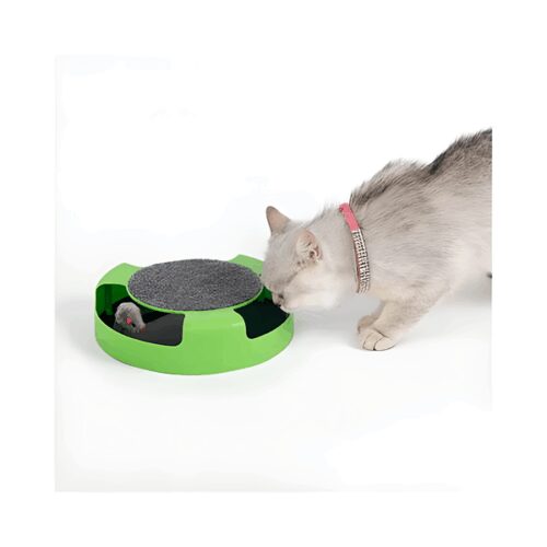 Игрушка для кошек поймай мышку представляет собой трек, внутри которого по кругу свободно вращается мышка. Через отверстия в треке кошка будет пытаться поймать постоянно убегающую от неё мышку.